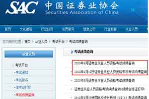 浙江2020年9月证券从业资格成绩查询入口:中国证券业协会【已开通】
